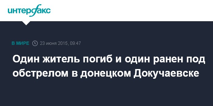 Москва. 23 июня. INTERFAX.RU - В результате ночного обстрела Докучаевска погиб мирный житель, сообщили в Минобороны самопровозглашенной Донецкой народной республики во вторник.