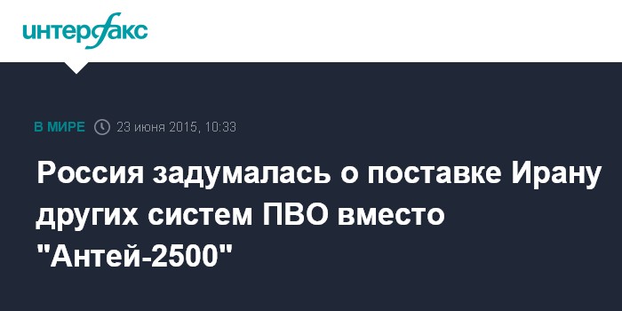Что касается ЗРС "Антей-2500", которую Россия готова предложить Тегерану взамен С-300ПМУ1, то вопрос с ее поставкой в Иран, по словам источника, пока не решен.