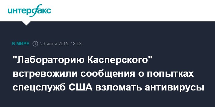 "Лаборатория Касперского" считает чрезвычайно тревожным тот факт, что спецслужбы государств нацелены на разработчиков решений в сфере информационной безопасности, которые стоят на защите всех пользователей Сети, вместо того, чтобы обратить свои разработки против настоящих киберпреступников", - сообщили "Интерфаксу" во вторник в пресс-службе компании.