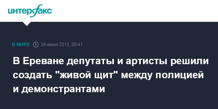 Москва. 24 июня. INTERFAX.RU - Депутаты парламента Армении, юристы, представители шоу-бизнеса и интеллигенции прибыли на проспект Баграмяна, где проводится акция протеста против повышения тарифов на электроэнергию.