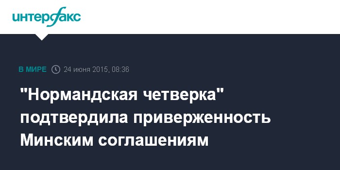 Москва. 24 июня. INTERFAX.RU - Главы МИД стран "нормандской четверки" подтвердили свою приверженность Минским соглашениям, заявил министр иностранных дел Франции Лоран Фабиус.