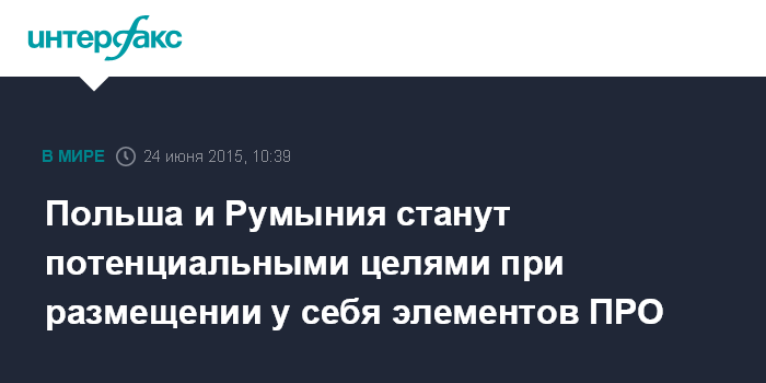 Польша и Румыния станут потенциальными целями при размещении у себя элементов ПРО