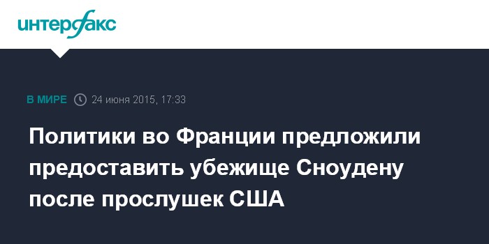 Москва. 24 июня. INTERFAX.RU - Некоторые французские политики озвучили в среду предложение предоставить убежище Эдуарду Сноудену в ответ на прослушивание американскими спецслужбами телефонных разговоров нескольких президентов Франции, сообщает парижская газета Le Figaro.