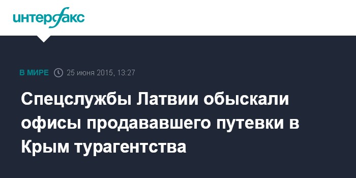 Москва. 25 июня. INTERFAX.RU - Спецслужбы Латвии провели обыски в рижских офисах турагентства, которое продавало путевки в Крым.
