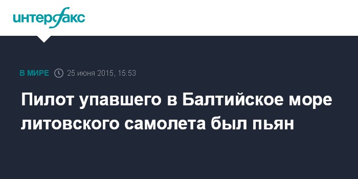 Москва. 25 июня. INTERFAX.RU - Почти промилле алкоголя обнаружили судмедэксперты в крови пилота литовского самолета Ан-2, упавшего в море по пути из Гетеборга в Клайпеду.