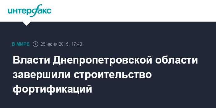 Москва. 25 июня. INTERFAX.RU - Днепропетровская область первой завершила строительство 27 защитных объектов фортификационных сооружений на ее участке ответственности в зоне проведения силовой операции на востоке Украины.