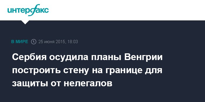 Москва. 25 июня. INTERFAX.RU - Власти Сербии раскритиковали намерение Венгрии возвести барьер на протяжении всей границы между двумя странами для сдерживания потока нелегальных мигрантов, сообщает в четверг агентство Associated Press.