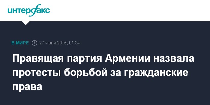 Москва. 27 июня. INTERFAX.RU - Пресс-секретарь правящей в Армении Республиканской партии, вице-спикер парламента Эдуард Шармазанов прокомментировал протесты в стране.