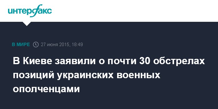 В Киеве заявили о почти 30 обстрелах позиций украинских военных ополченцами