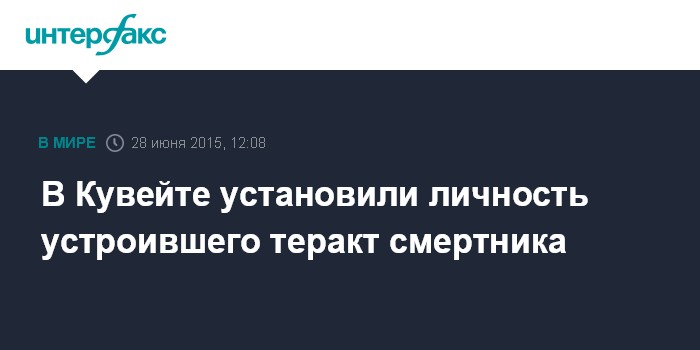 Москва. 28 июня. INTERFAX.RU - МВД Кувейта установило личность экстремиста, совершившего теракт в мечети, передает в воскресенье агентство КУНА.
