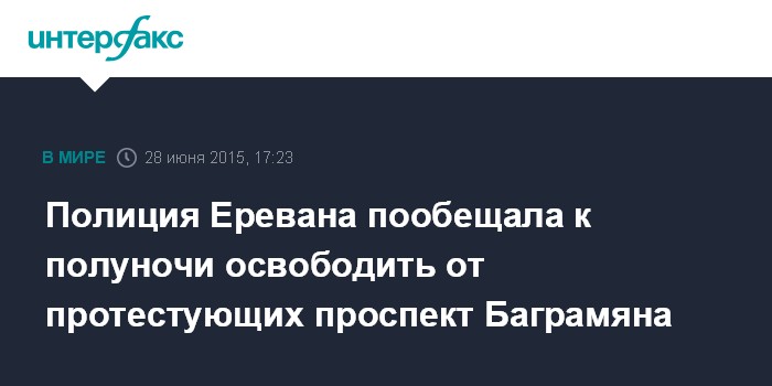 Полиция Еревана пообещала к полуночи освободить от протестующих проспект Баграмяна
