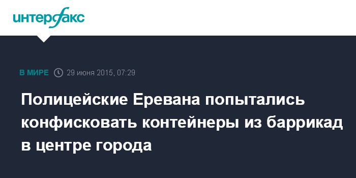 Москва. 29 июня. INTERFAX.RU - Протестующие на проспекте Баграмяна в центре Еревана препятствуют представителям полиции, которые пытаются разобрать баррикады из мусорных контейнеров, передает корреспондент "Интерфакса".