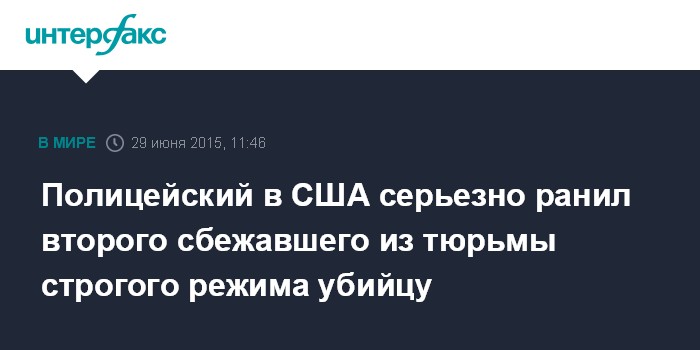 Полицейский в США серьезно ранил второго сбежавшего из тюрьмы строгого режима убийцу