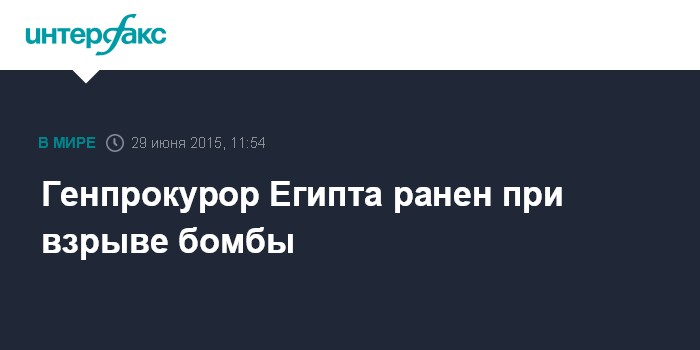 Москва. 29 июня. INTERFAX.RU - Генеральный прокурор Египта Хишам Баракат получил ранения в результате взрыва бомбы в Каире, сообщают в понедельник западные СМИ со ссылкой на египетскую полицию.