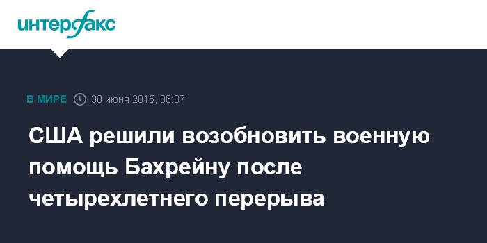 Москва. 30 июня. INTERFAX.RU - США приняли решение о возобновлении военной помощи Бахрейну, сообщил официальный представитель Госдепартамента Джон Кирби.