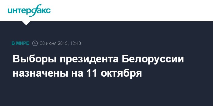 Москва. 30 июня. INTERFAX.RU - Палата представителей Национального собрания Белоруссии во вторник назначила проведение выборов главы государства на 11 октября, передает корреспондент "Интерфакса".