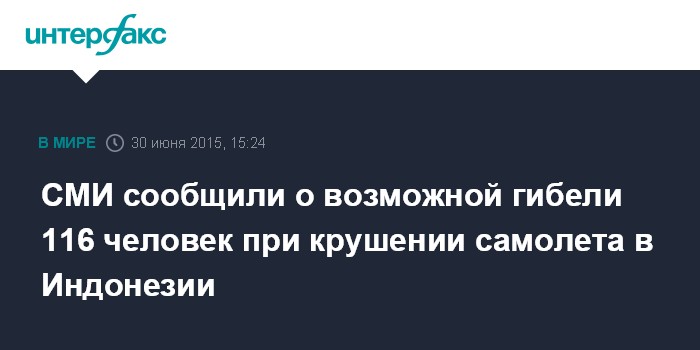 Москва. 30 июня. INTERFAX.RU - По меньшей мере 116 человек могли погибнуть в результате крушения самолет ВВС Индонезии в город Медан, пишут во вторник западные СМИ.