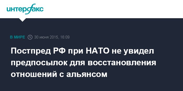 Москва. 30 июня. INTERFAX.RU - Постоянный представитель России при НАТО Александр Грушко не видит на данный момент предпосылок для возобновления конструктивных отношений между Россией и Североатлантическим альянсом.