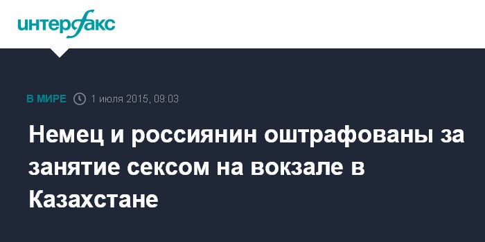 Москва. 1 июля. INTERFAX.RU - Суд в Костанае оштрафовал двух мужчин - 60-летнего гражданина Германии и 33-летнего россиянина, которые занимались сексом в здании железнодорожного вокзала, сообщила пресс-служба областного суда.