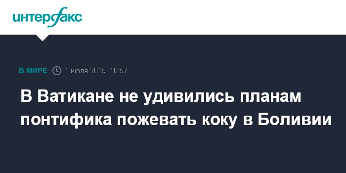 Москва. 1 июля. INTERFAX.RU - Намерения папы римского Франциска попробовать в ходе визита в Боливию листья коки не вызывают опасений в Ватикане, сообщил руководитель Зала печати Святого престола преподобный Федерико Ломбарди.