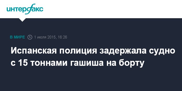 Москва. 1 июля. INTERFAX.RU - Полиция Испании перехватила в 92 км от Малаги судно, которое перевозило 15,7 тонны гашиша, говорится в распространенном в среду заявлении МВД Испании.