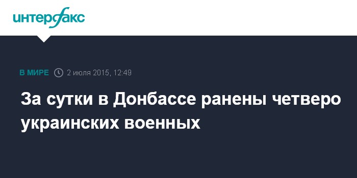 Москва. 2 июля. INTERFAX.RU - За прошедшие сутки погибших среди украинских военных в зоне проведения силовой операции в Донбассе нет, четверо ранены.