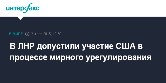 Москва. 2 июля. INTERFAX.RU - В руководстве самопровозглашенной Луганской народной республики не исключают возможности привлечения США к процессу мирного урегулирования на востоке Украины, но собираются решать этот вопрос коллективно с участниками контактной группы.