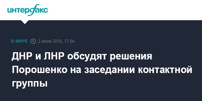 ДНР и ЛНР обсудят решения Порошенко на заседании контактной группы