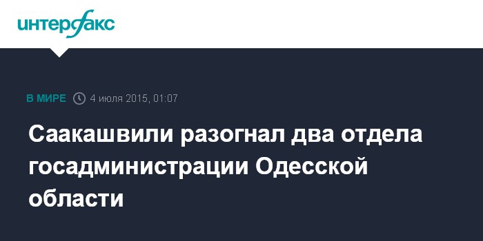 Москва. 4 июля. INTERFAX.RU - Губернатор Одесской области Михаил Саакашвили уволил всех сотрудников двух отделов областной администрации после отчетов на открытом совещании.