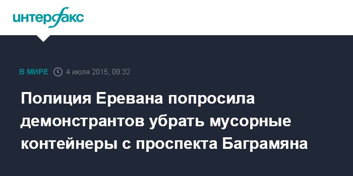 Полиция Еревана попросила демонстрантов убрать мусорные контейнеры с проспекта Баграмяна