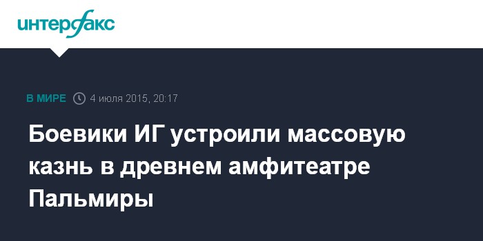 Это уже не первая массовая казнь, устроенная боевиками ИГ в Пальмире. В конце мая исламисты убили 20 человек на территории того же амфитеатра. Казненных обвинили в том, что они сражаются на стороне президента Сирии Башара Асада.