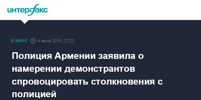 Москва. 4 июля. INTERFAX.RU - Полиция Армении предупредила демонстрантов в центре Еревана о незаконности их действий.