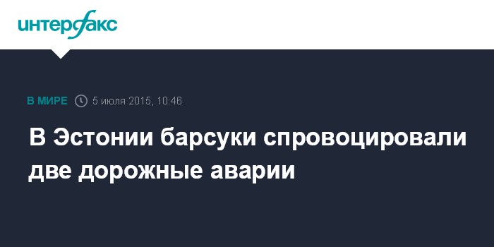 Москва. 5 июля. INTERFAX.RU - За последние два дня на Сааремаа, самом большом острове Эстонии, два мотоциклиста попали в аварию из-за выбежавших на дорогу барсуков.