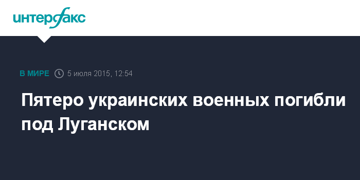 Москва. 5 июля. INTERFAX.RU - За минувшие сутки в зоне проведения силовой операции на юго-востоке Украины пятеро военнослужащих погибли, есть раненые, сообщил в воскресенье спикер администрации президента по военным вопросам Александр Мотузяник.