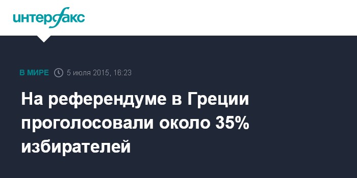 Москва. 5 июля. INTERFAX.RU - Референдум по вопросу соглашения с международными кредиторами, проходящий в Греции, скорее всего, будет признан состоявшимся, сообщил греческий частный телеканал Mega TV.