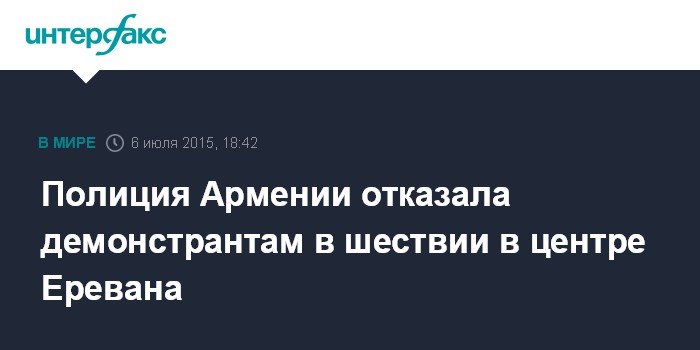 Москва. 6 июля. INTERFAX.RU - В полиции Армении заявили, что не позволят демонстрантам провести шествие по центральным улицам Еревана.