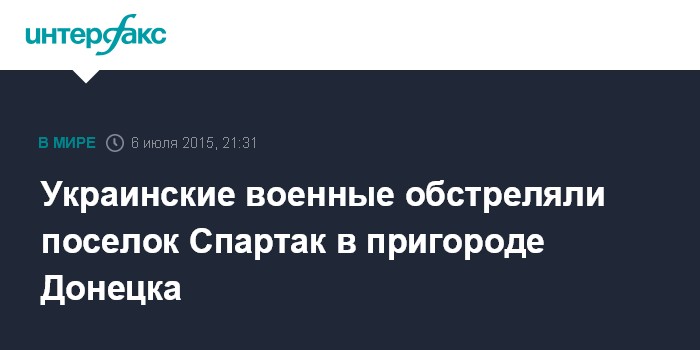 Москва. 6 июля. INTERFAX.RU – Населенный пункт Спартак возле донецкого аэропорта подвергся артобстрелу с украинской стороны, сообщает в понедельник Донецкое агентство новостей со ссылкой на администрацию Ясиноватского района Донецка.