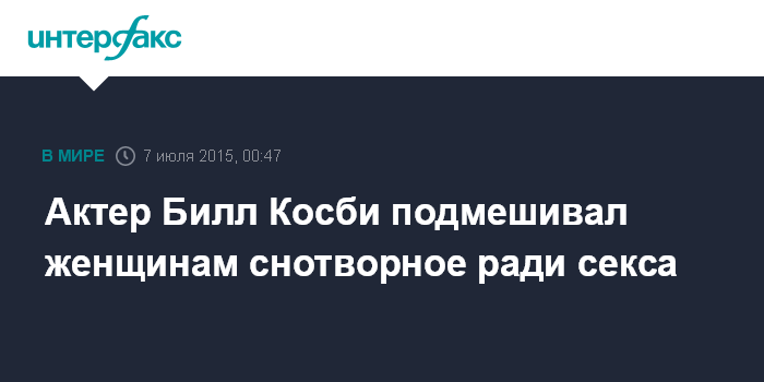 Москва. 7 июля. INTERFAX.RU - Американский актер Билл Косби признался, что использовал снотворное метаквалон (под брендом Quaaludes) для того, чтобы склонить женщин к сексу, сообщило во вторник агентство Associated Press со ссылкой на судебные документы.