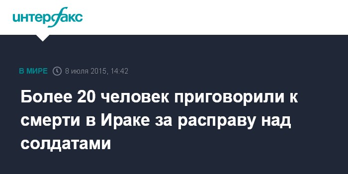 Москва. 8 июля. INTERFAX.RU - Иракский суд вынес смертные переговоры 24 радикалам по обвинению в причастности к расправе над сотнями солдат в прошлом году, сообщает агентство AP.