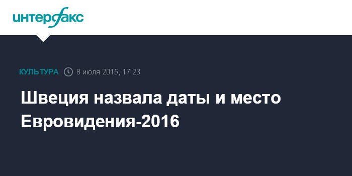 Москва. 8 июля. INTERFAX.RU - Швеция, которая в 2016 году примет конкурс Евровидение, выбрала город, в котором пройдет состязание - им стал Стокгольм, сообщается в среду на сайте конкурса.