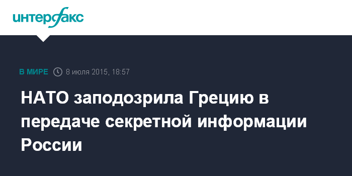 Москва. 8 июля. INTERFAX.RU - В НАТО полагают, что греческая сторона передает России секретные данные, которые Афины получают от союзников по Североатлантическому альянсу, сообщило в среду американское издание The Daily Beast, ссылаясь на информированные источники в западных спецслужбах.