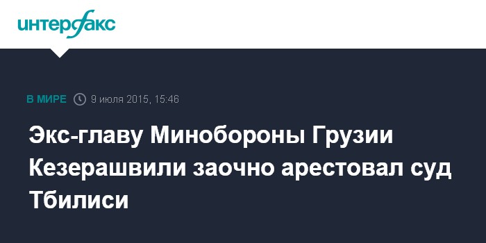 Москва. 9 июля. INTERFAX.RU - Тбилисский городской суд постановил заочно взять под стражу бывшего министра обороны Грузии Давида Кезерашвили, обвиняемого в насильственном захвате бизнеса в 2010 году.