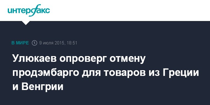 Как сообщалось, ранее Минэкономразвития рассматривало в качестве одного из вариантов возможность выведения из-под эмбарго товаров, наиболее интересных для Греции и Венгрии, чтобы продуктовое эмбарго не так сильно ударяло по экономикам этих стран.