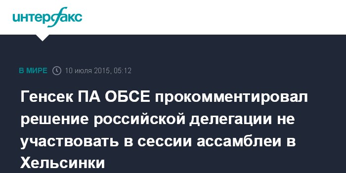 Генсек ПА ОБСЕ прокомментировал решение российской делегации не участвовать в сессии ассамблеи в Хельсинки