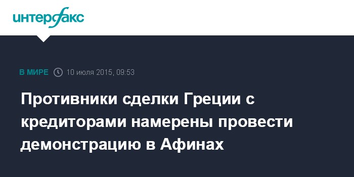 Противники сделки Греции с кредиторами намерены провести демонстрацию в Афинах