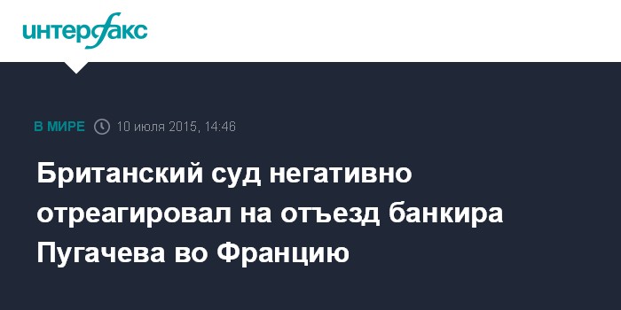 Москва. 10 июля. INTERFAX.RU - Высокий суд Англии считает, что банкир и бывший российский сенатор Сергей Пугачев, уехавший во Францию, проявил неуважение к суду, сообщают истцы по одному из дел против экс-члена Совфеда РФ.