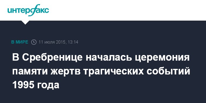 Москва. 11 июля. INTERFAX.RU - Десятки тысяч человек собрались в субботу в боснийском населенном пункте Сребреница на церемонию в память трагических событий 1995 года.