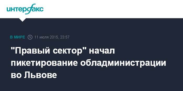 Москва. 11 июля. INTERFAX.RU - Несколько представителей "Правого сектора" (запрещенная в РФ экстремистская организация) в субботу вечером начали бессрочную акцию протеста под стенами Львовской областной госадминистрации в связи с событиями в закарпатском Мукачево.