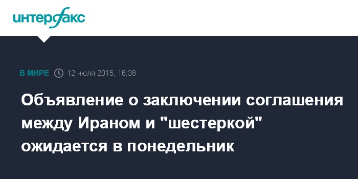 Объявление о заключении соглашения между Ираном и "шестеркой" ожидается в понедельник