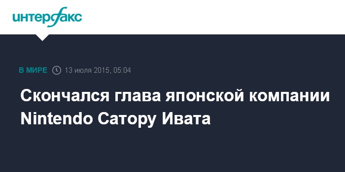"С сожалением Nintendo сообщает, что президент Сатору Ивата умер 11 июля 2015 году от опухоли в желчном протоке", — говорится в сообщении.
